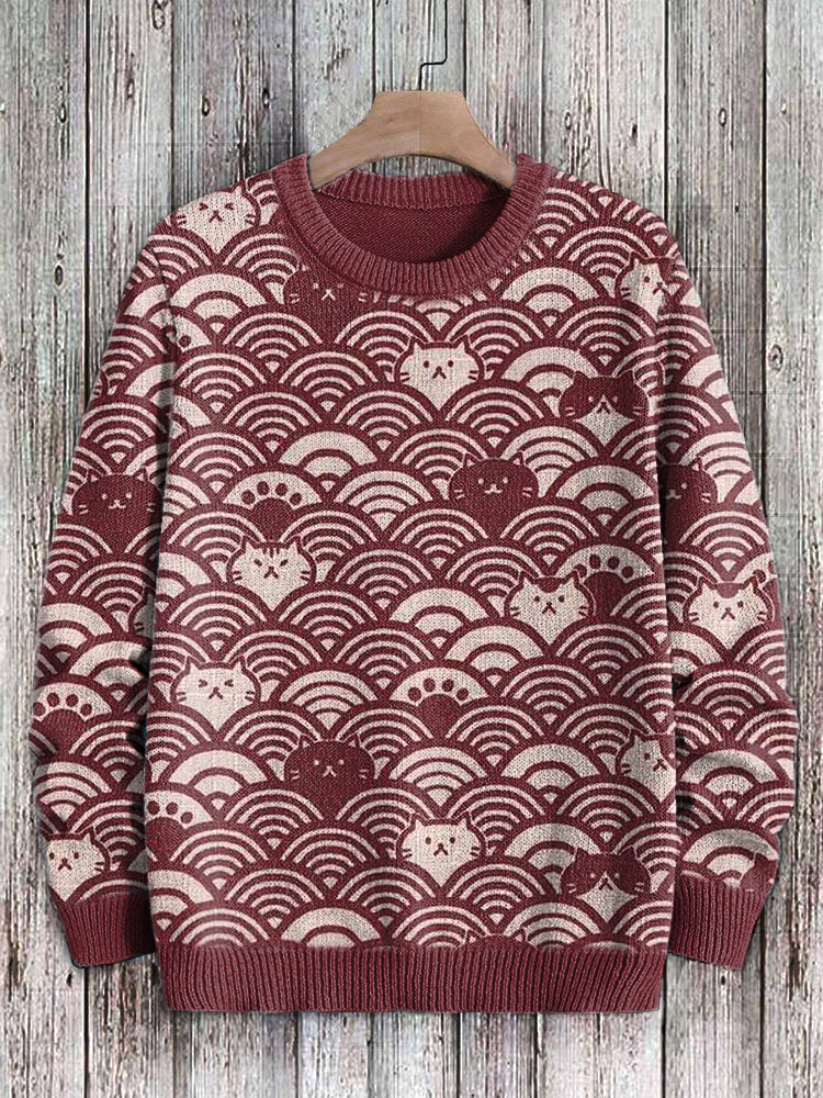 Cats & Waves Japanese Art Print Cozy Knit Sweater