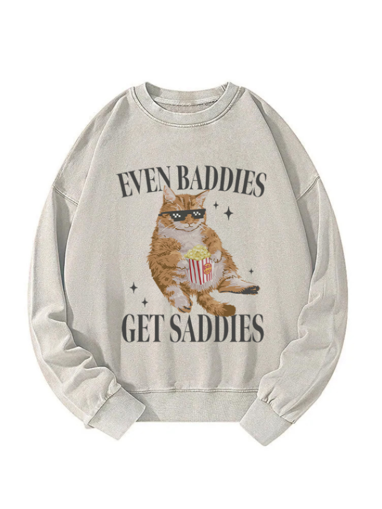 Even Baddies Get Saddies Funny Cat Meme Washed Sweatshirt