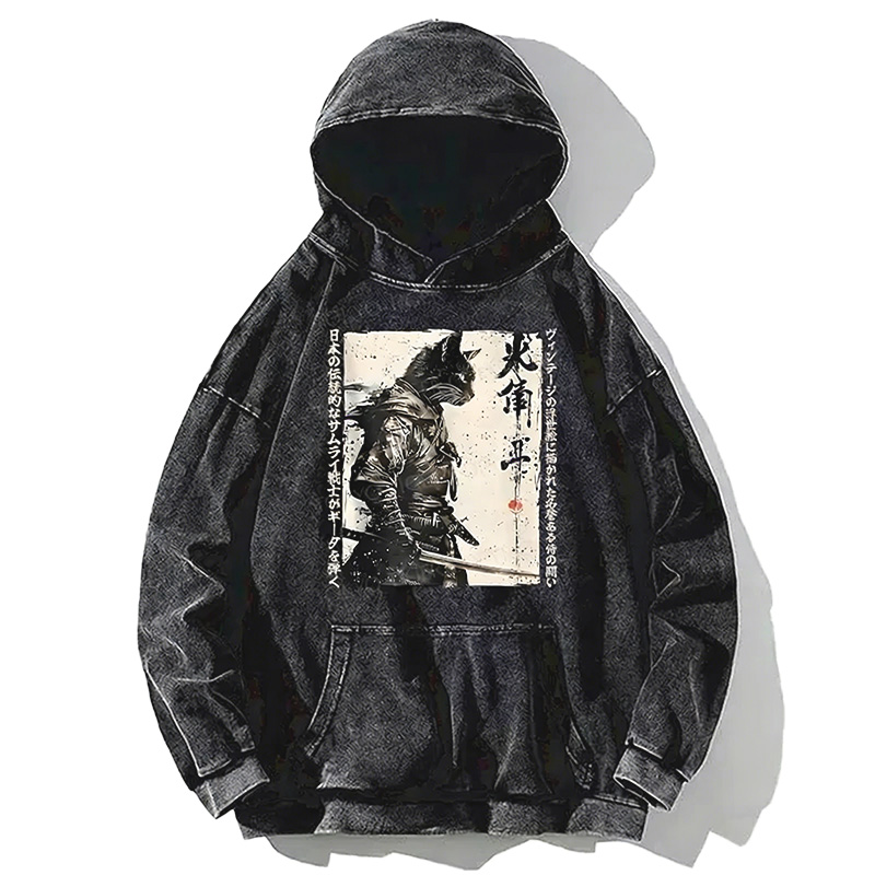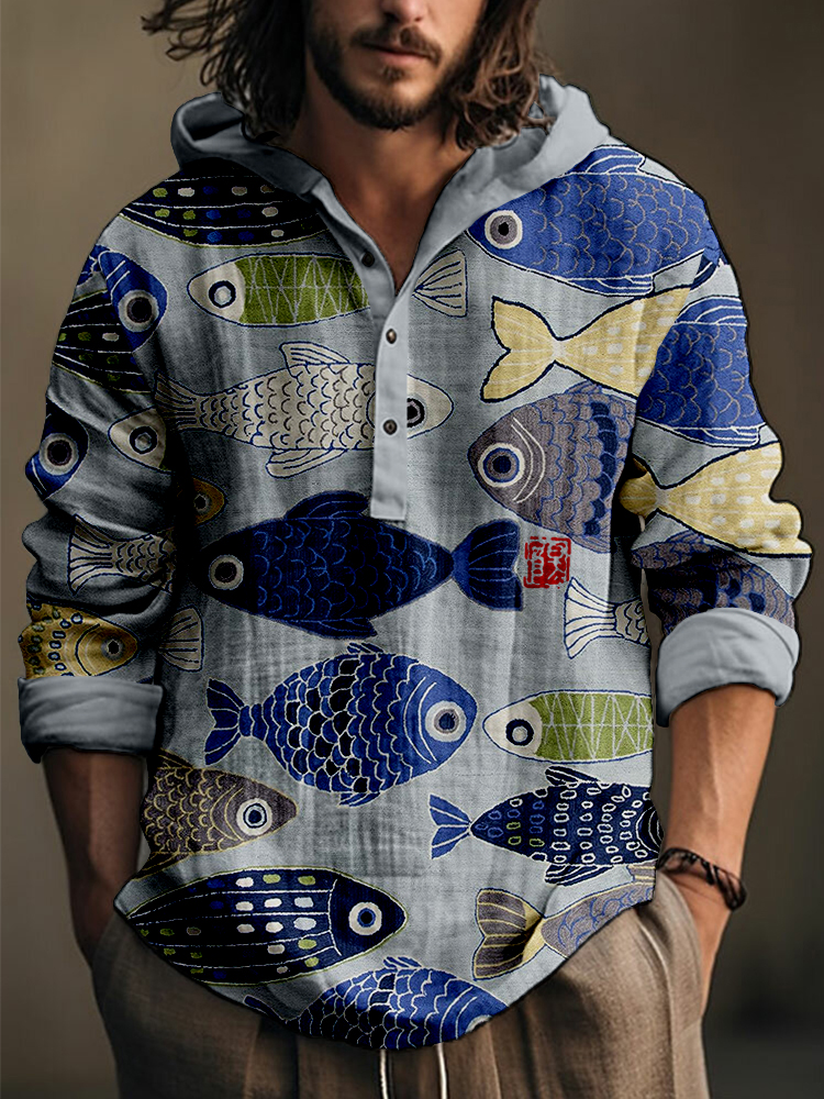 Vintage Fish Japanese Art Linen Blend Hooded Shirt