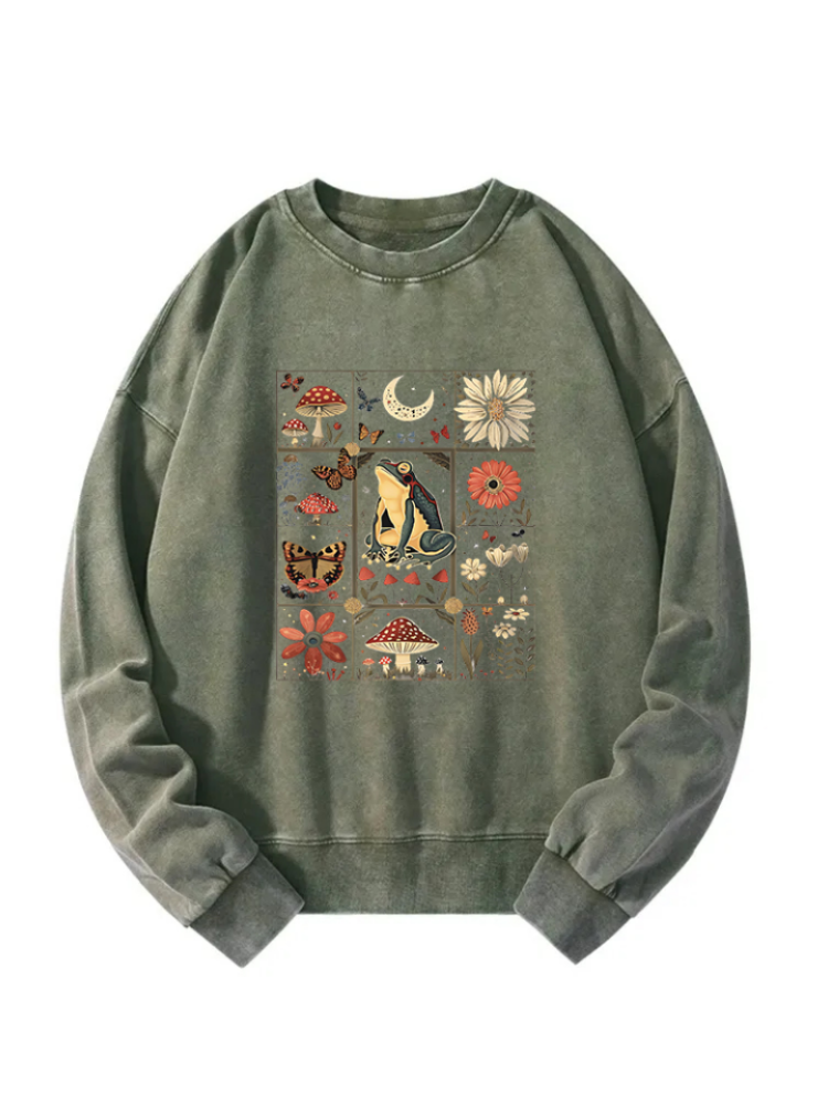 Celestial Frog Goblincore Mushroom Washed Sweatshirt