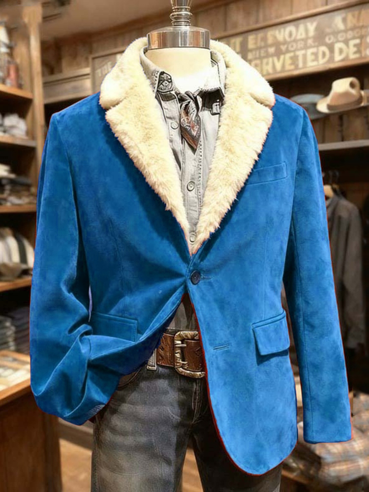 Men's Christmas Solid Color Fur Collar Printed Blazer