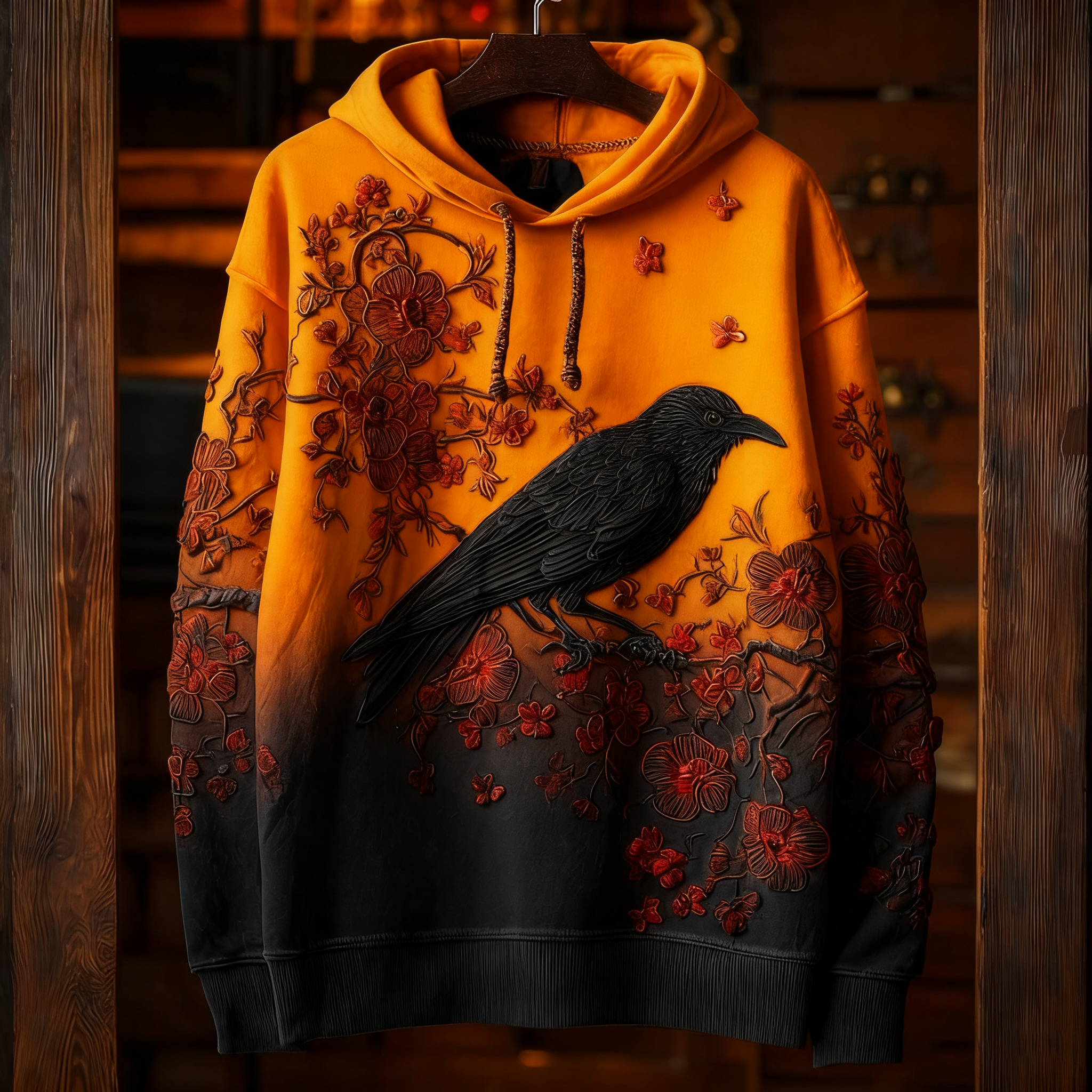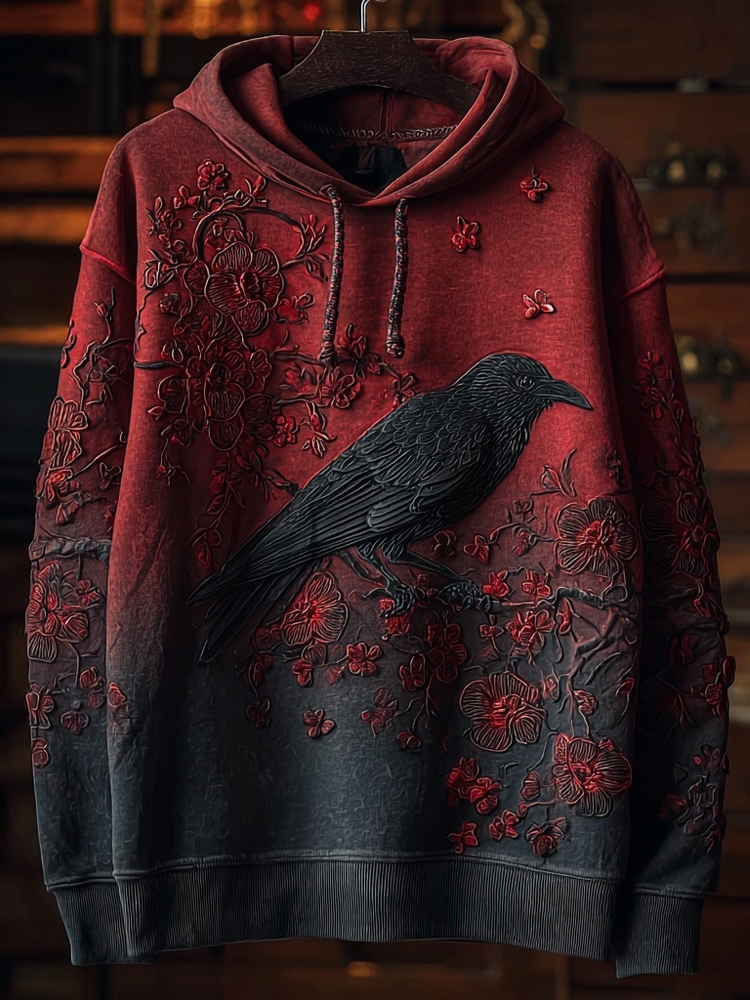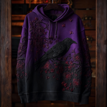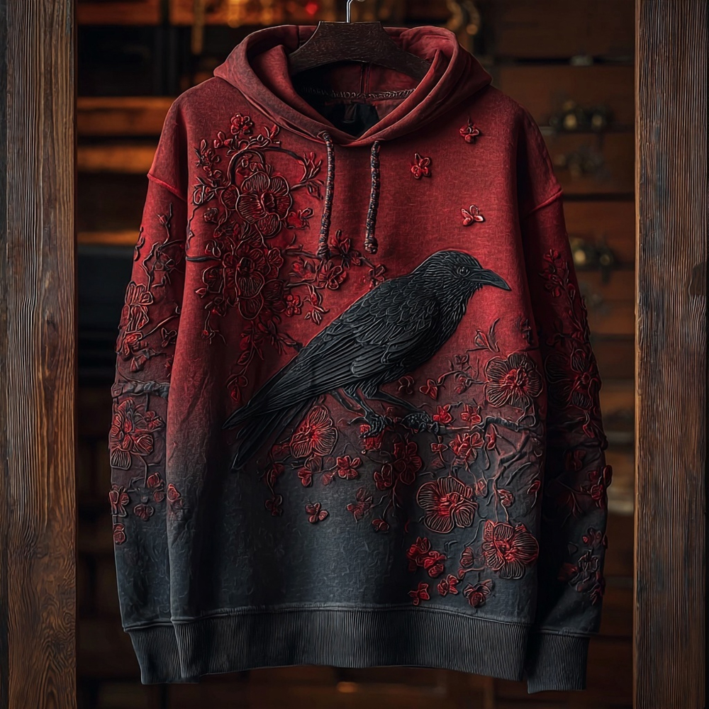 Men's Raven & Cherry Blossom Embroidered Washed Hoodie