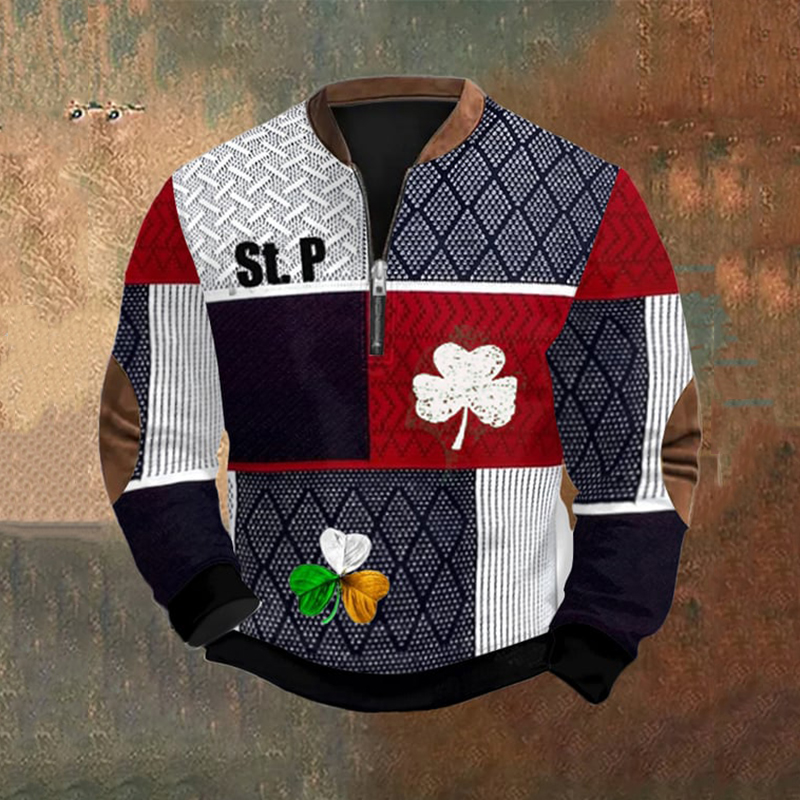 Men's St. Patrick's Day Textured Print Zip Collar Sweatshirt