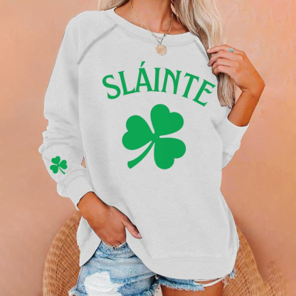 St. Patrick's Day Slainte Clover Print Crew Neck Casual Sweatshirt