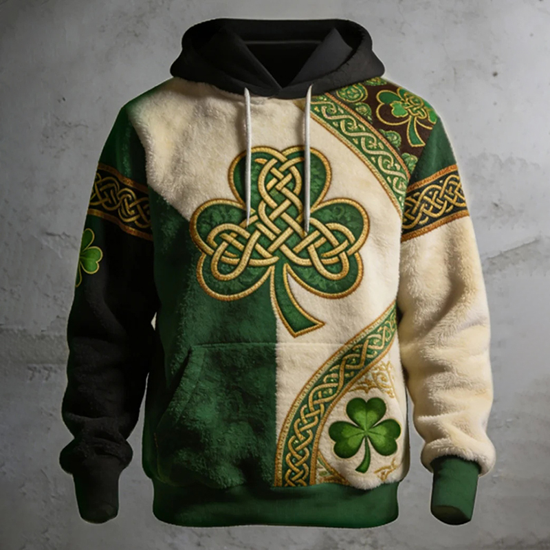 Vintage St. Patrick's Day Shamrock Contrast Casual Plush Hoodie