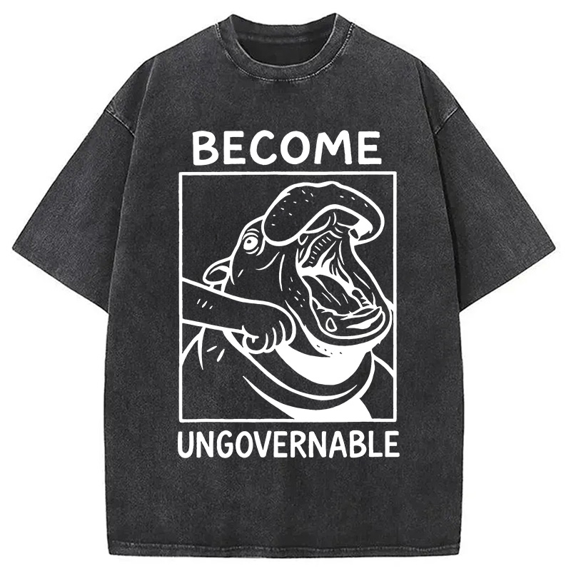 Become Ungovernable Funny Hippo Meme Washed T-shirt