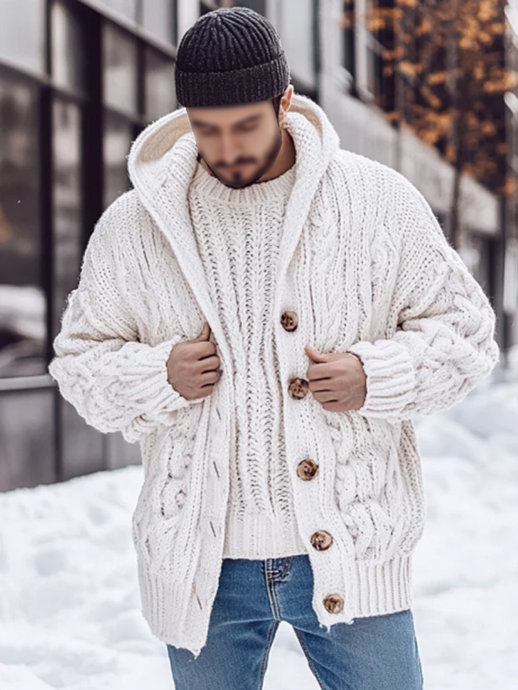 Men'S Rough Textured Buttoned Down Cozy Sweater Cardigan