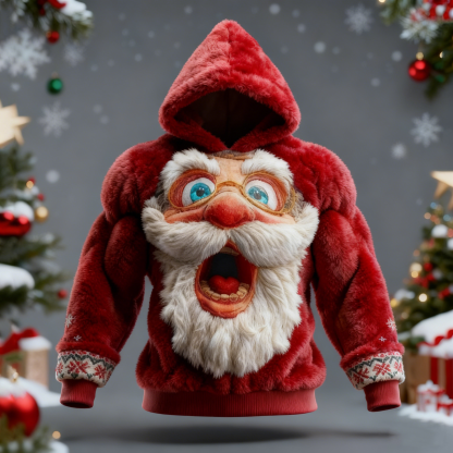 Men's Surprised Santa Claus Print Ugly Hooded Sweater