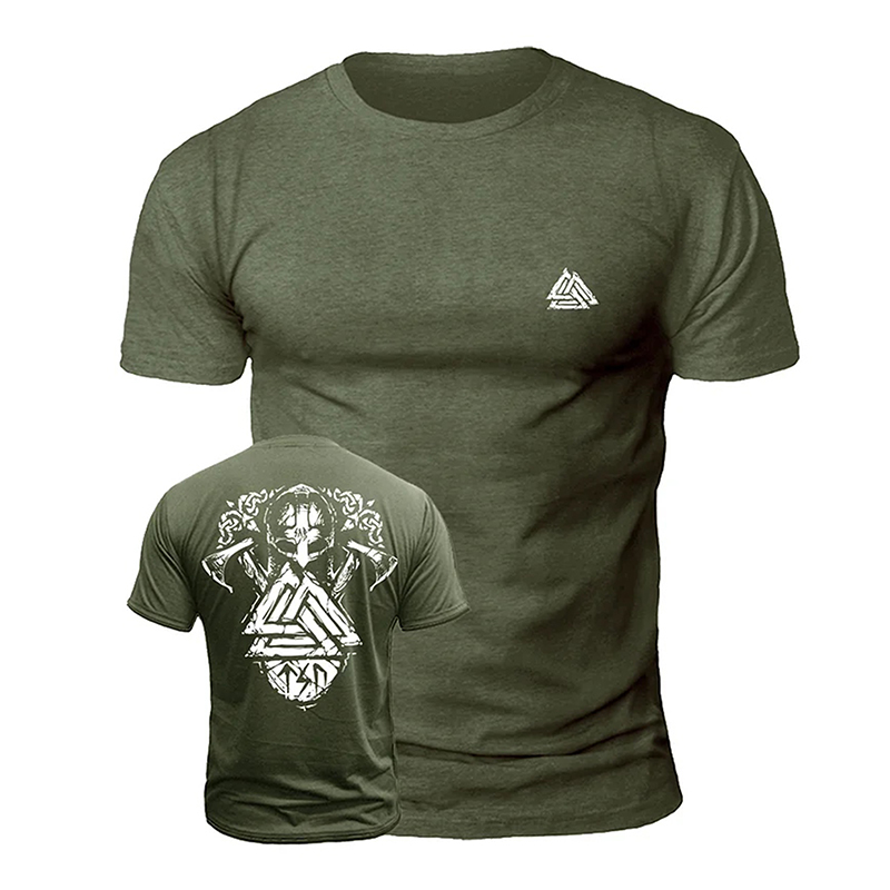 Men's Viking Mythology Triangle Symbol Print Casual Short Sleeve T-shirt