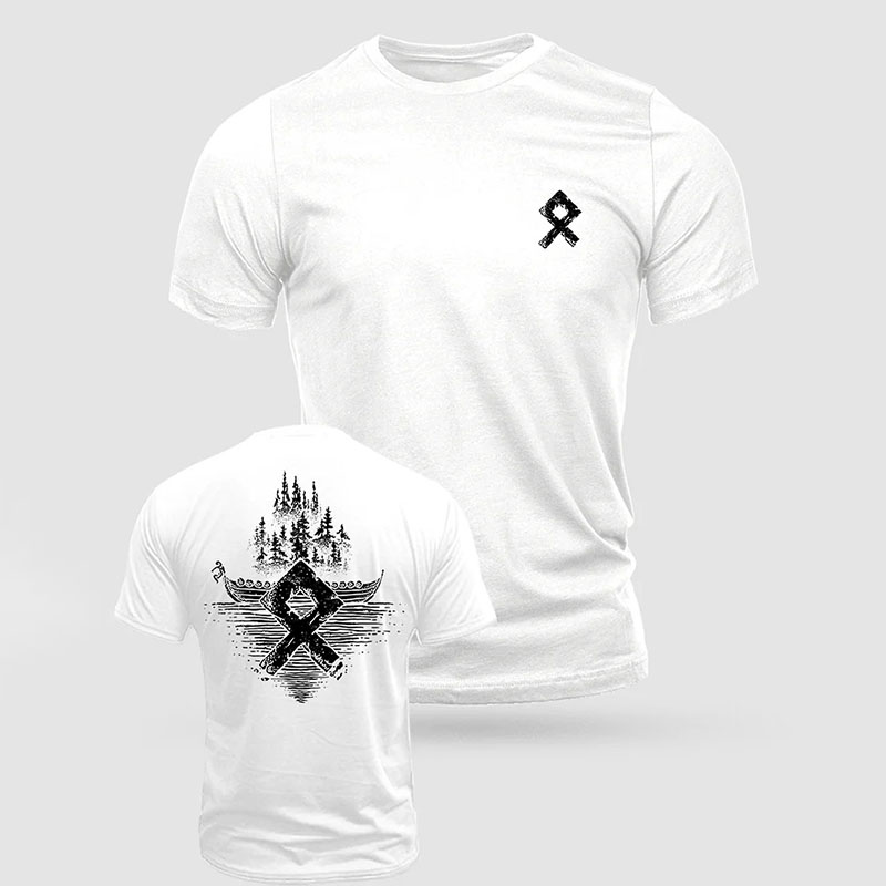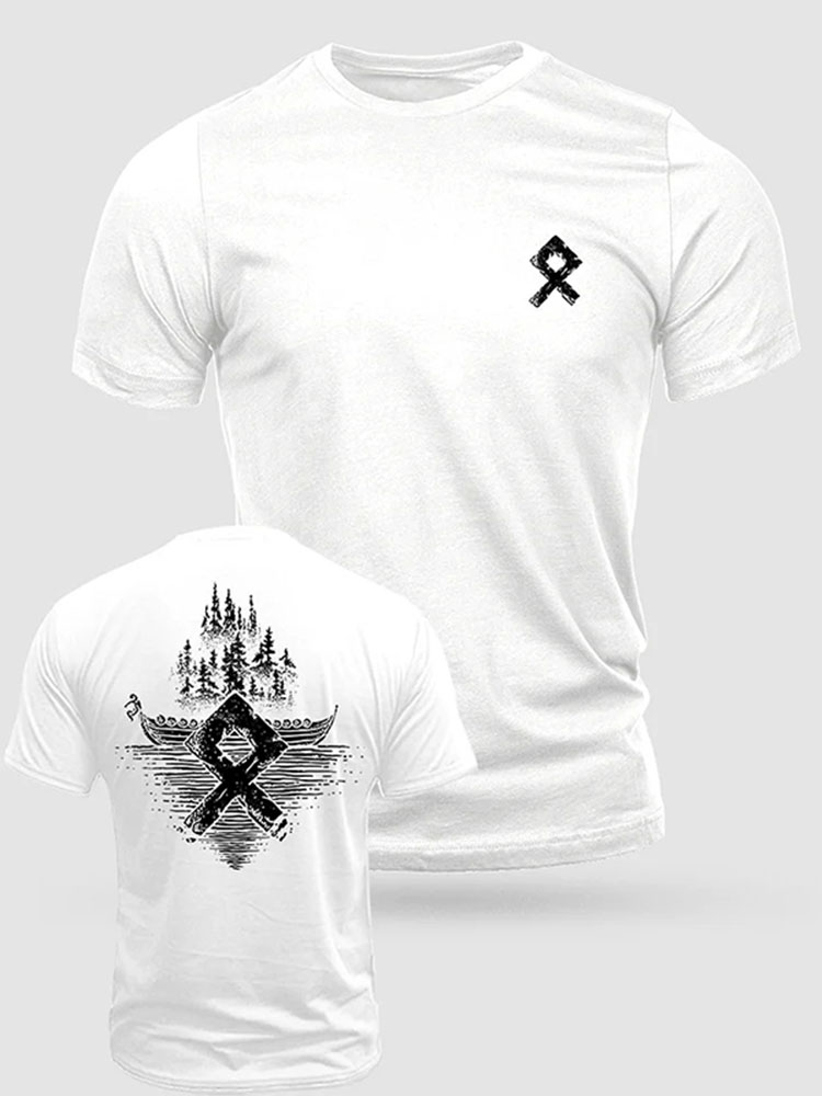 Men's Viking Rune Forest Symbol Print Casual Short Sleeve T-shirt