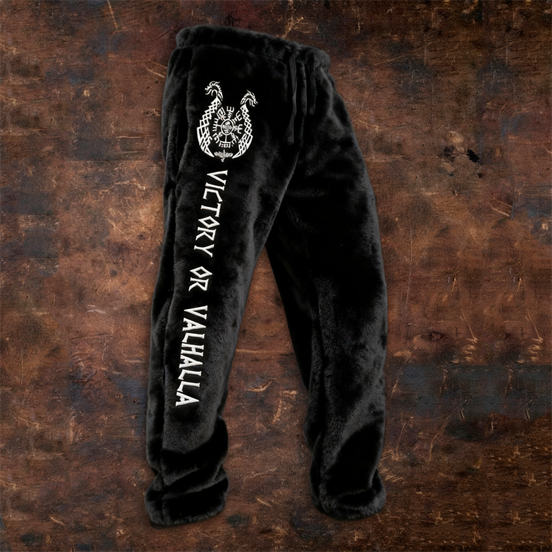 Men's Viking Victory Or Valhalla Vegvisir Embroidered Cozy Plush Sweatpants