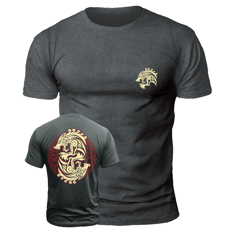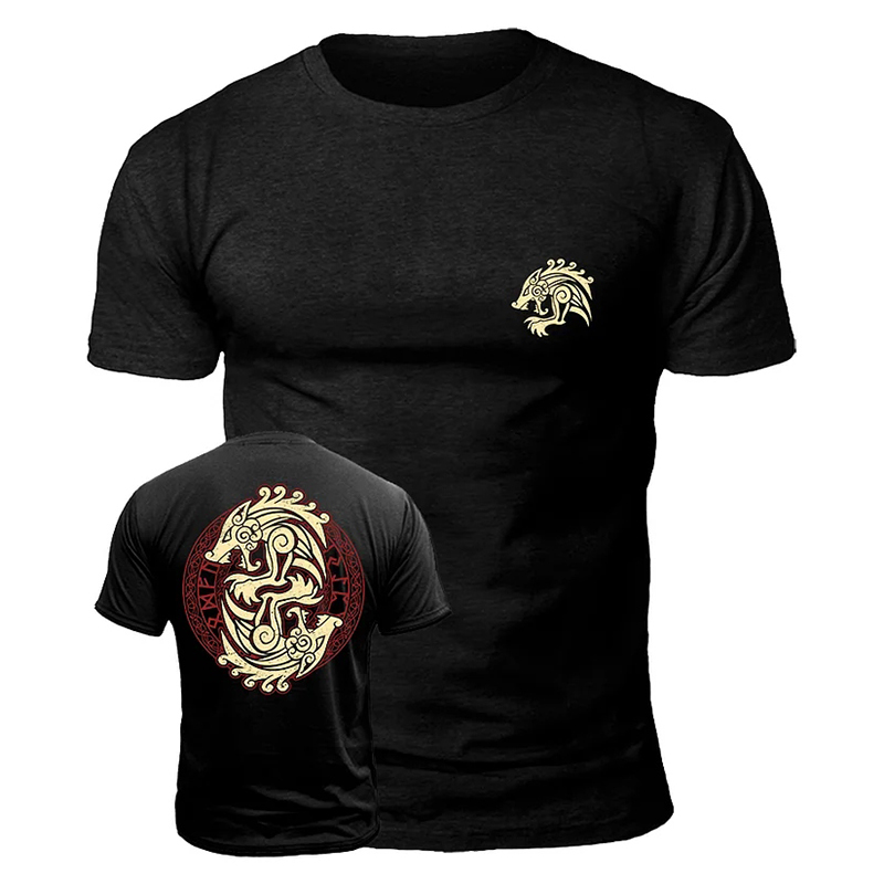 Men's Viking Wolf Norse Mythology Print Casual Short Sleeve T-shirt