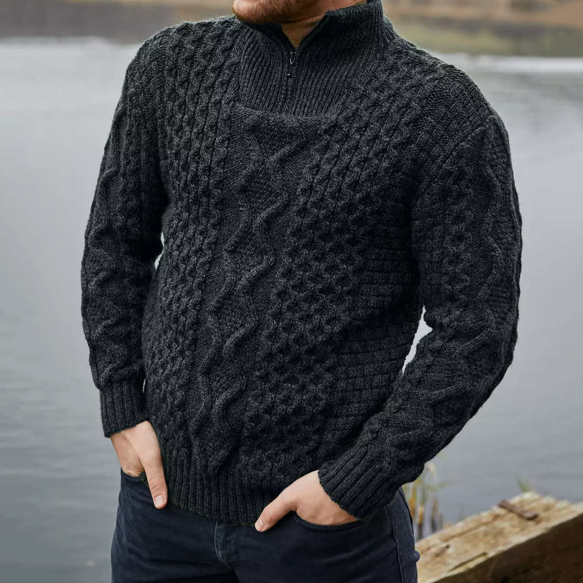 Men's Vintage Cable Knit Aran Zip Neck Turtleneck Sweater