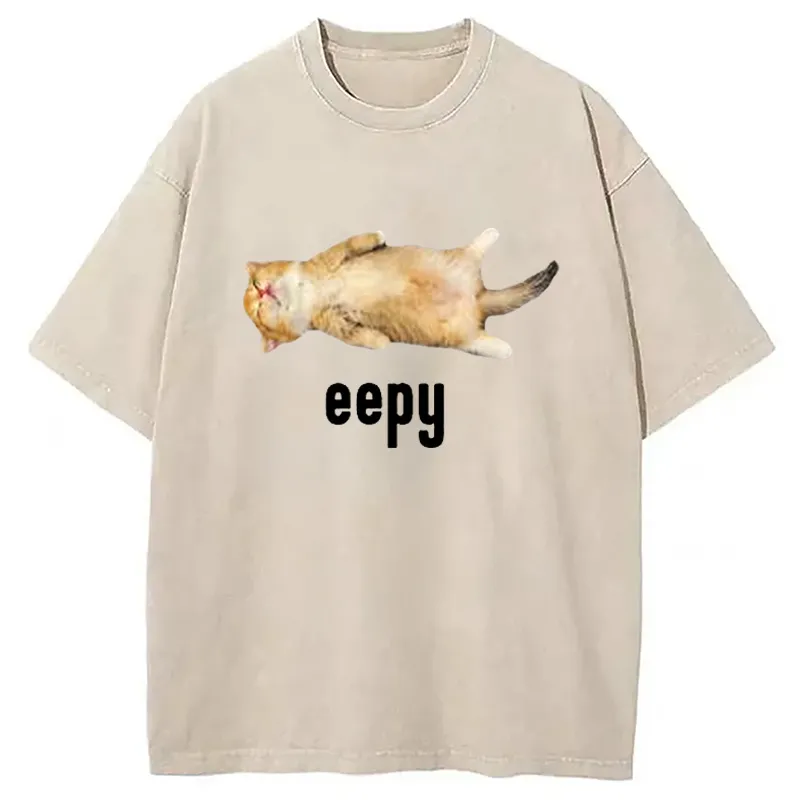 Silly Sleepy Cat Meme Washed T-shirt